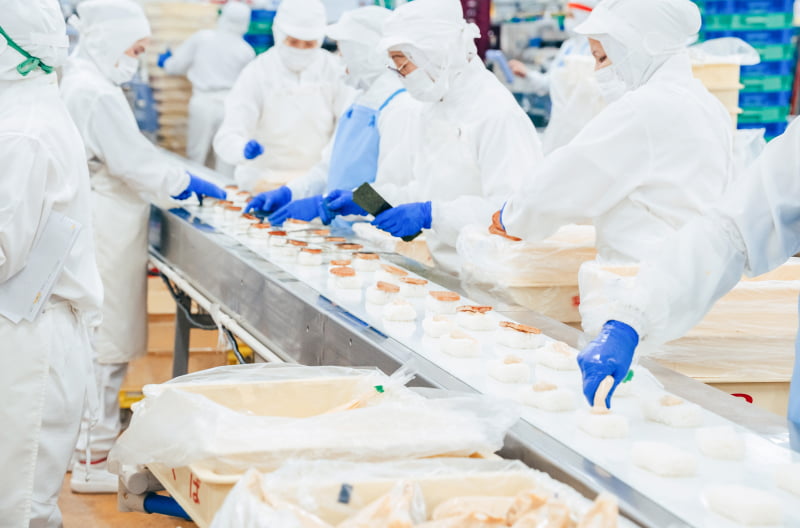 出来上がった商品は、検品専任者が、包装状態・盛り付け状態に加え、再度ラベル・シールが正しいかの確認を行います。