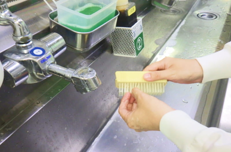 これも手順に従って石鹸で洗った後、爪ブラシを使って念入りに洗います。
