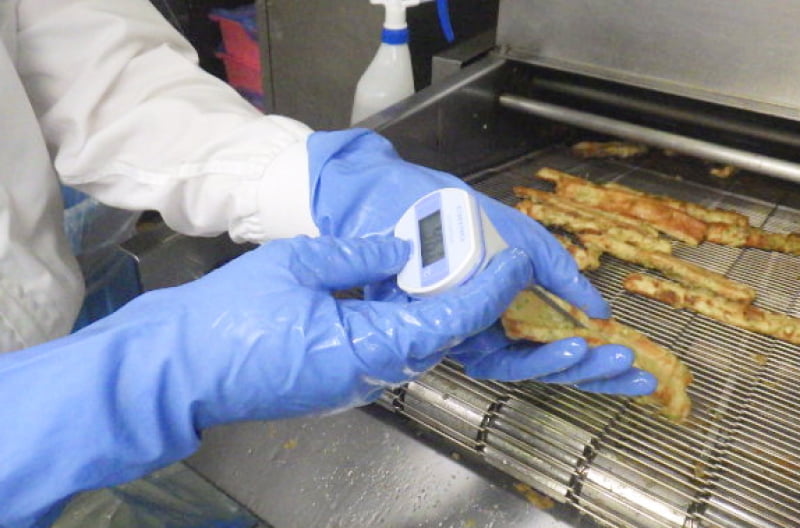 調理品は加熱及び冷却が基準通り出来ているか中心温度を測定して確認します。