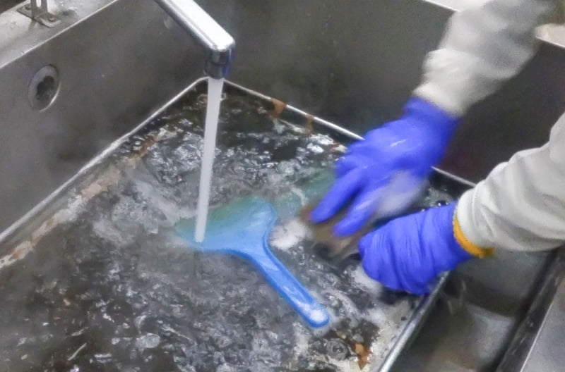 使用した機械・器具類は、専用の洗浄室で徹底的な洗浄・消毒を行って、衛生的な商品作りを行っています。