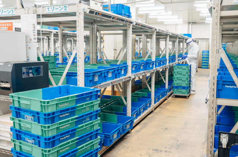毎日入荷する原材料は、受入れ検査で賞味期限や適正な温度で配送されてきたか確認を行った後、先に入荷したものから使う「先入れ先出し」が出来るようにして、各温度帯の保管庫に保管します。