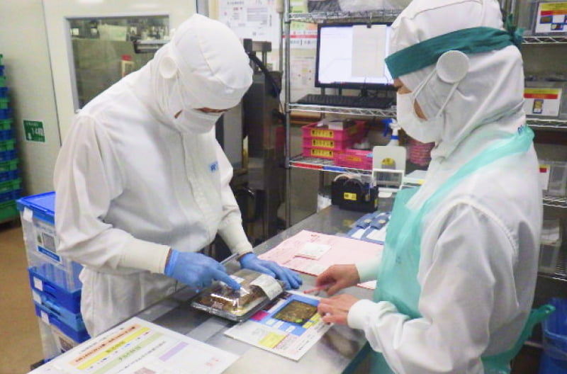 出来上がった商品は、規定の温度で消費期限まで保管した後、細菌検査を行って安全の確認を行います。